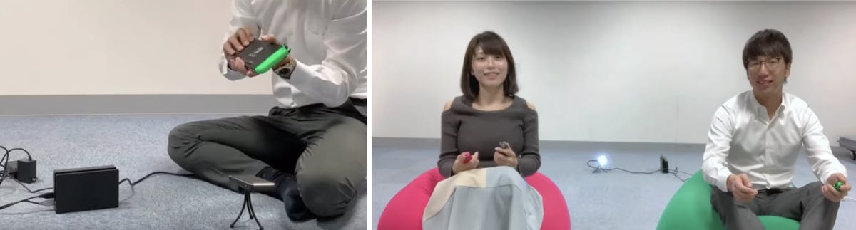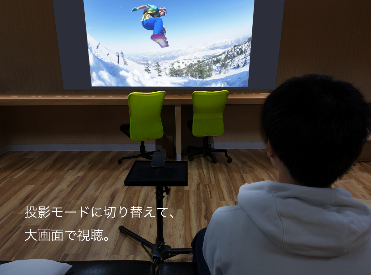 通勤中はバッテリーとして持ち歩き、会社に着いたらスイッチを切り替えてプロジェクターモードに。