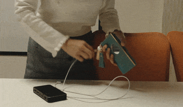 FN-03本体を外部のモバイルバッテリーに接続しながら、投影することも可能です。