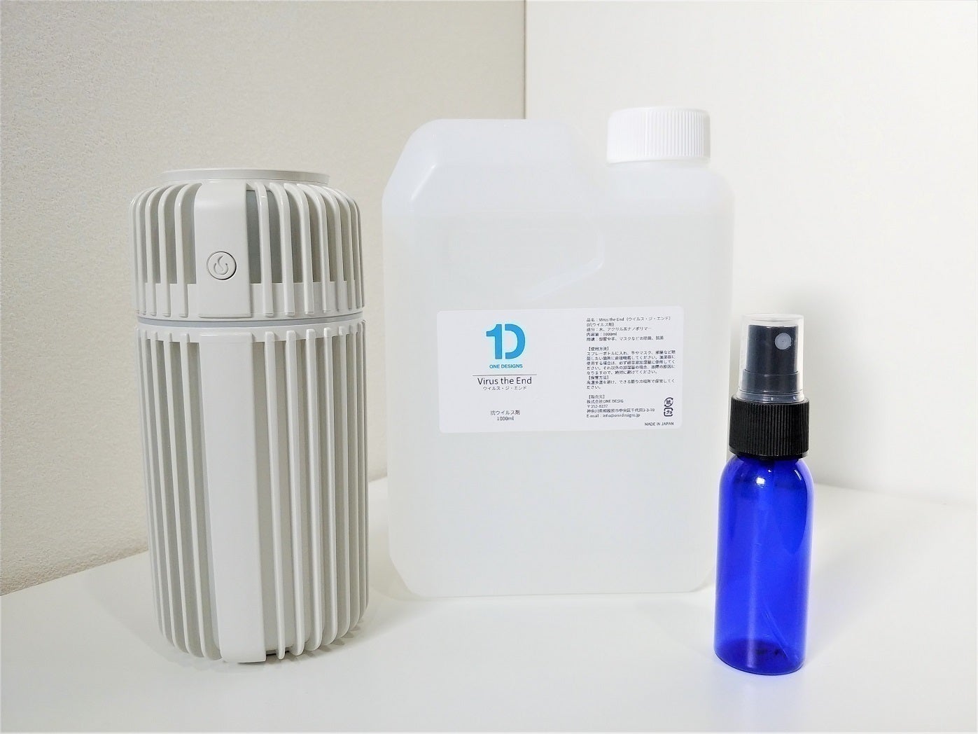 今回開発した抗ウィルス剤 Virus the End(ウイルス・ジ・エンド)は、刺激物を一切使用せずに除菌、抗ウィルスが出来る画期的アイテムです。無色・無臭で臭いも気になりません。