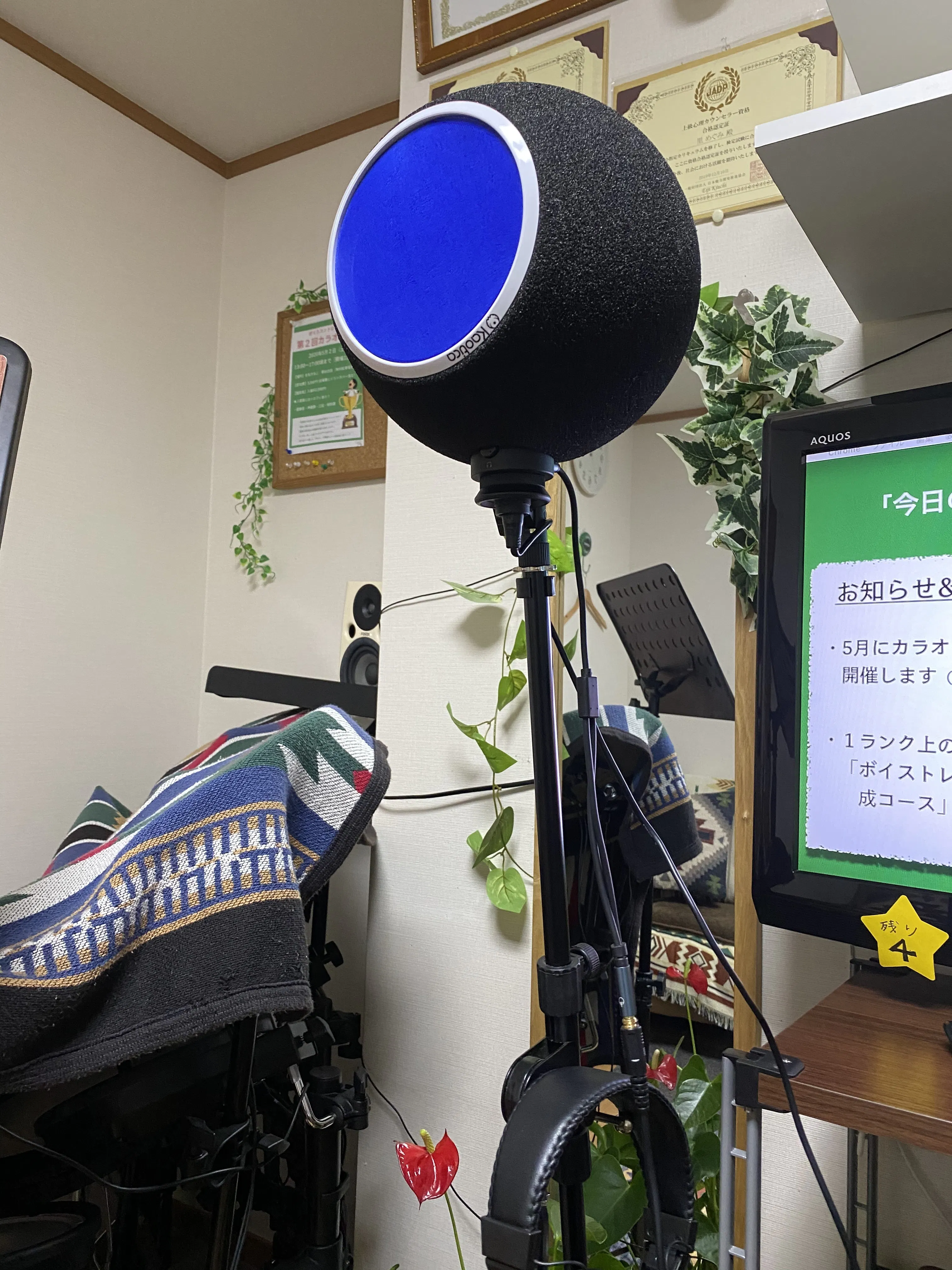(反響防止のため、この球体にレコーディングのマイクが入ってます)