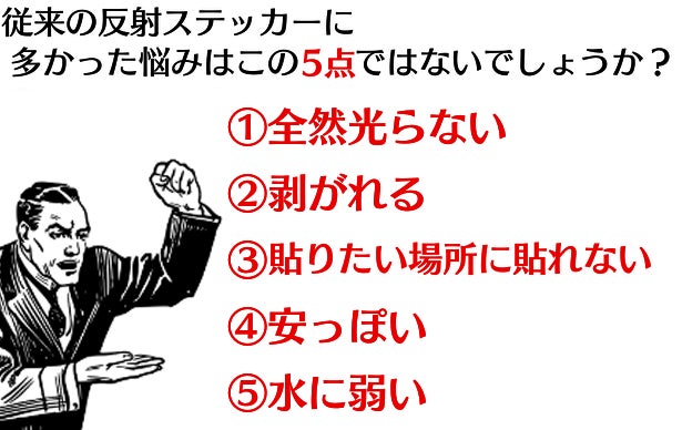 従来品に多かった一定方向からの光のみを反射する反射シールからワンランク上の安心をあなたに。