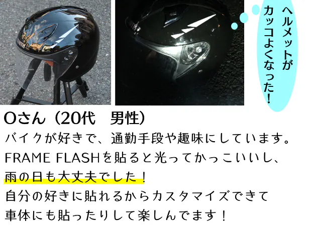 FRAME FLASHを貼っていただくことで高い可視性を実現することができます。