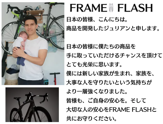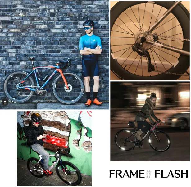 自転車のフレームやヘルメット、ハンドル部分等スタイリッシュに光るFRAME FLASHは場所を選ばず、かっこよくあなたを照らし、夜道に安全をもたらします!