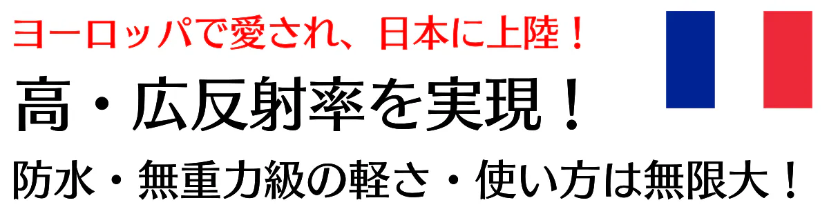 A: 一番の違いは、高反射率・広範囲の反射・防水加工・スタイリッシュなデザインです。