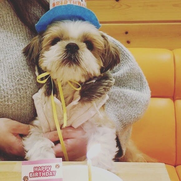 (先日9歳の誕生日をドッグカフェでお祝いした写真です。)
