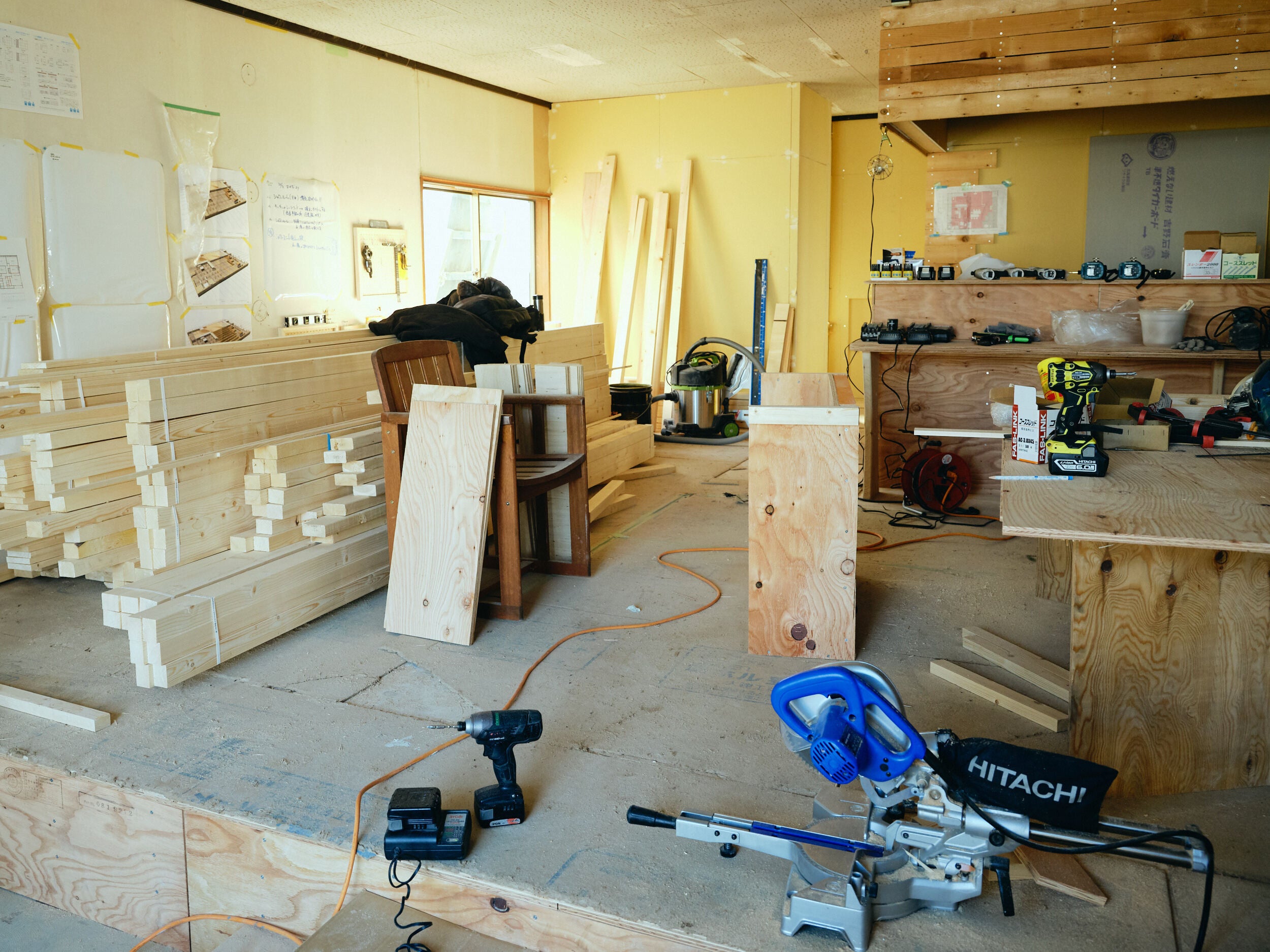 だけどこのホウキは、nanmo-nanmoのリノベーション作業中に、実際に使っていたものです。