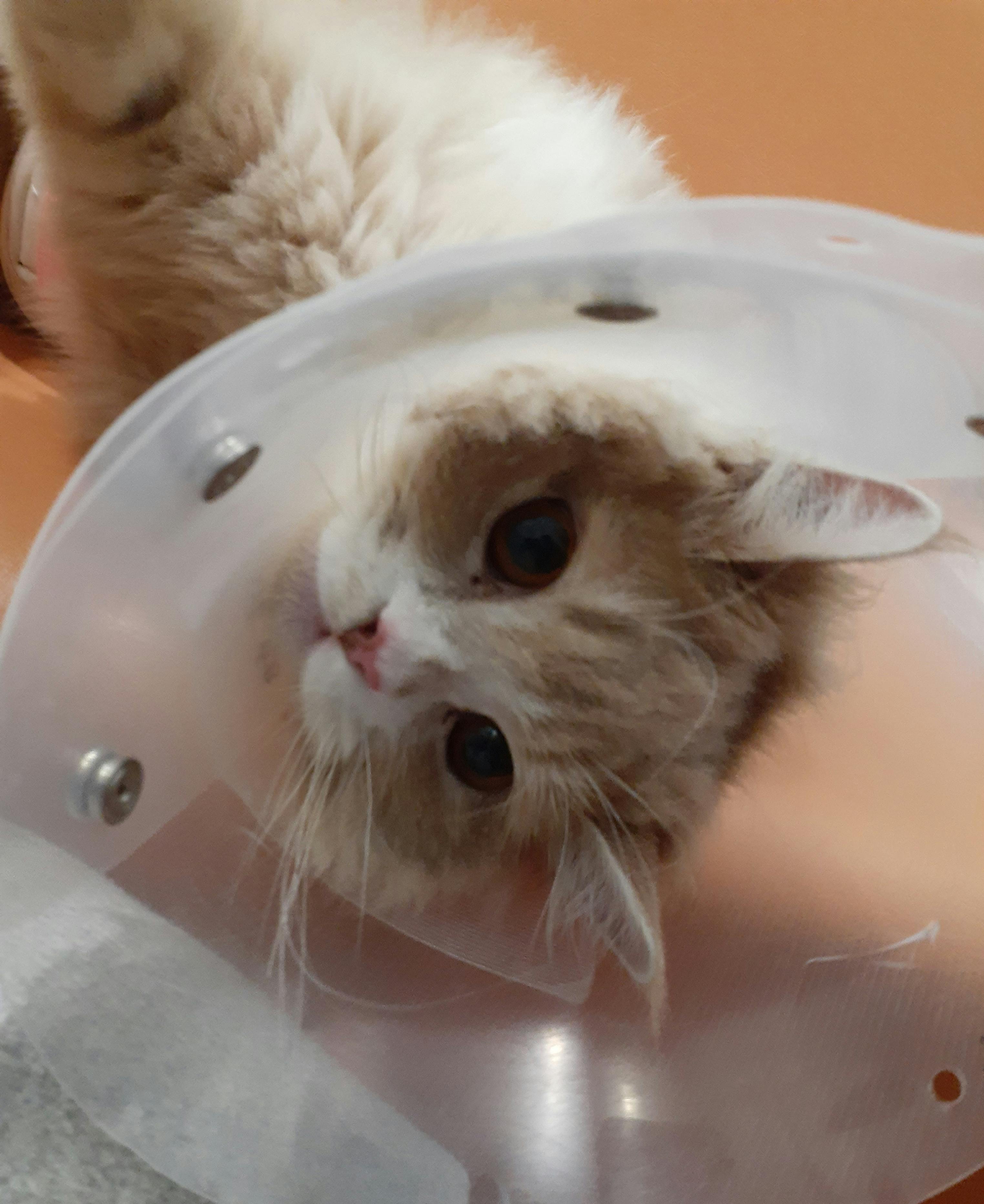 入院中に寝かせられているケージの前では別の子の処置をしているのでそこまで入れないとのことだったので、別室の小部屋に連れてきていただき対面しました。