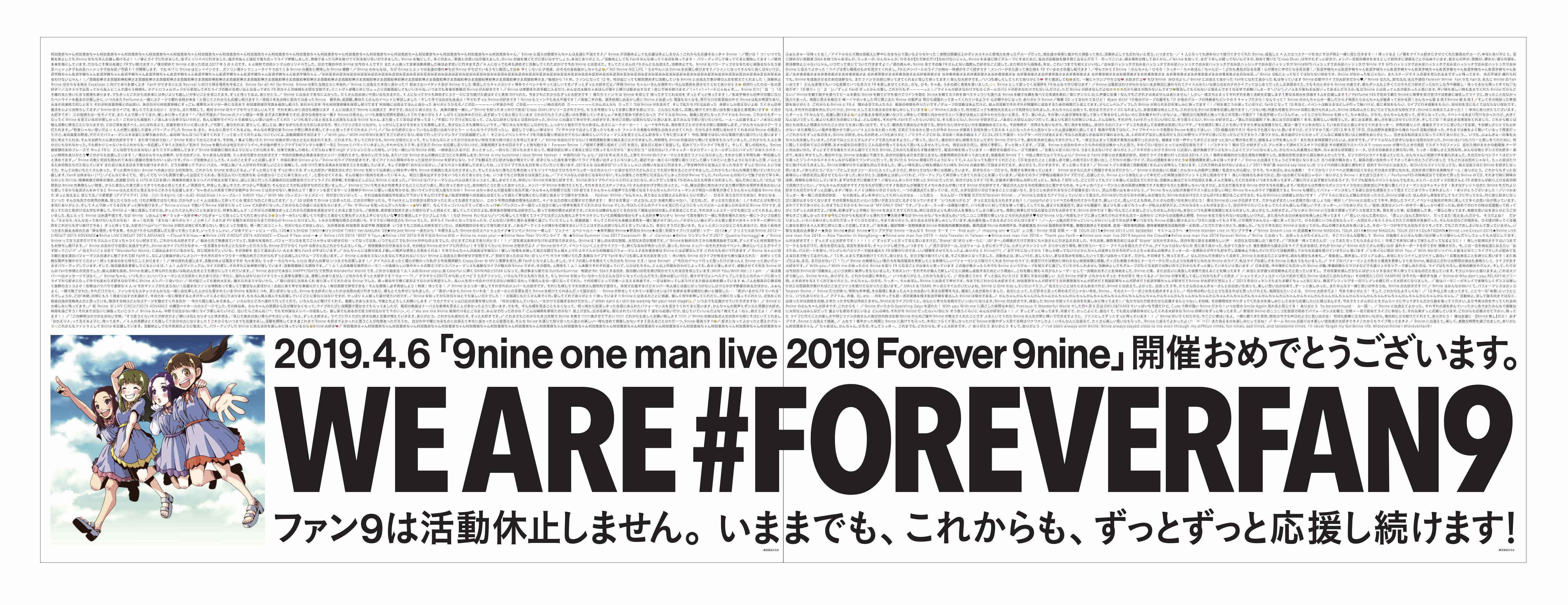 ☆9nineの活動再開を目指して応援メッセージとお名前(ニックネーム可)を、広告に掲載致します。