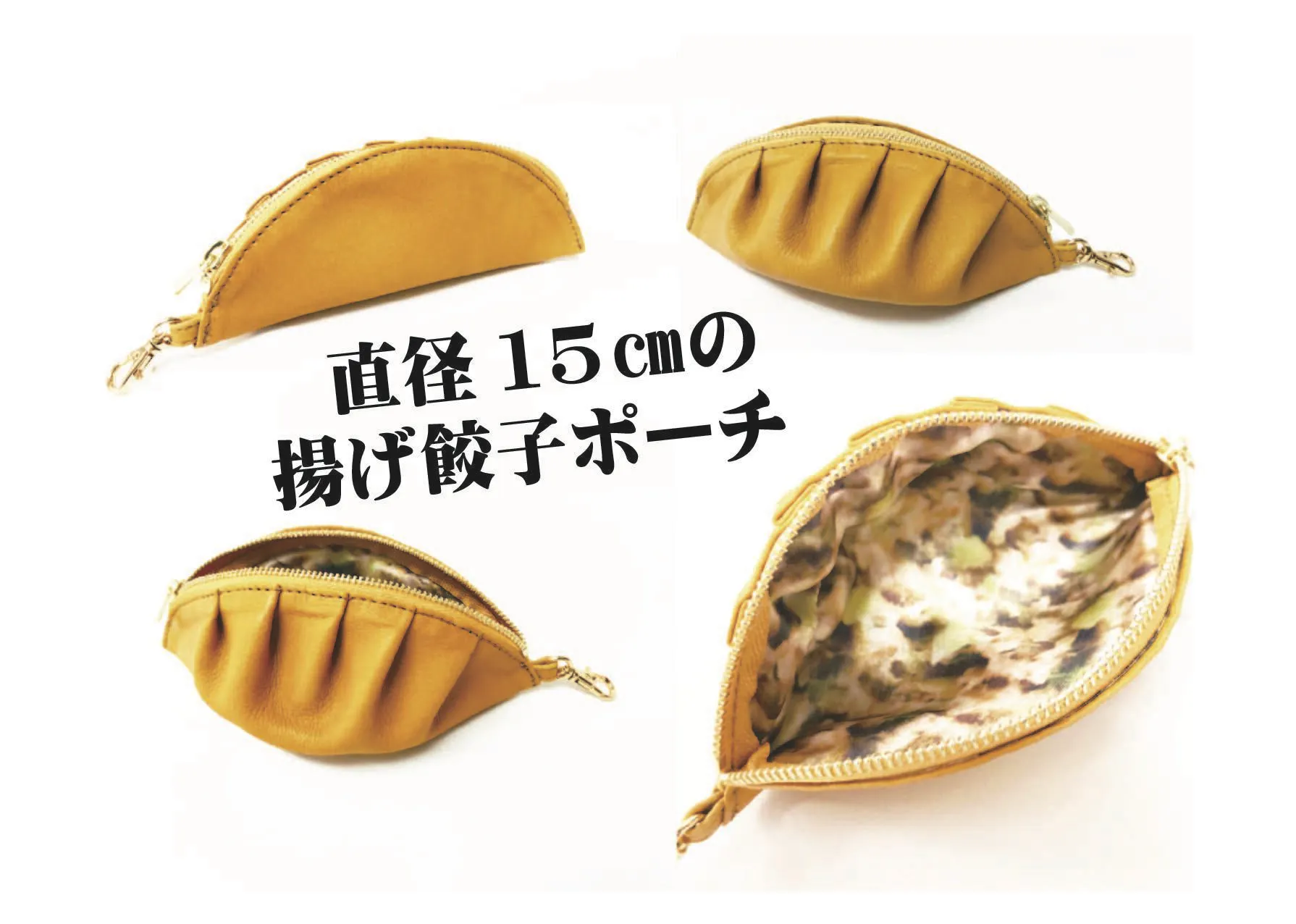 裏地の餃子の具の印刷は今井貴裕が実際の餃子の具の写真をそのまま生地に印刷をした、こだわりの商品となっています。