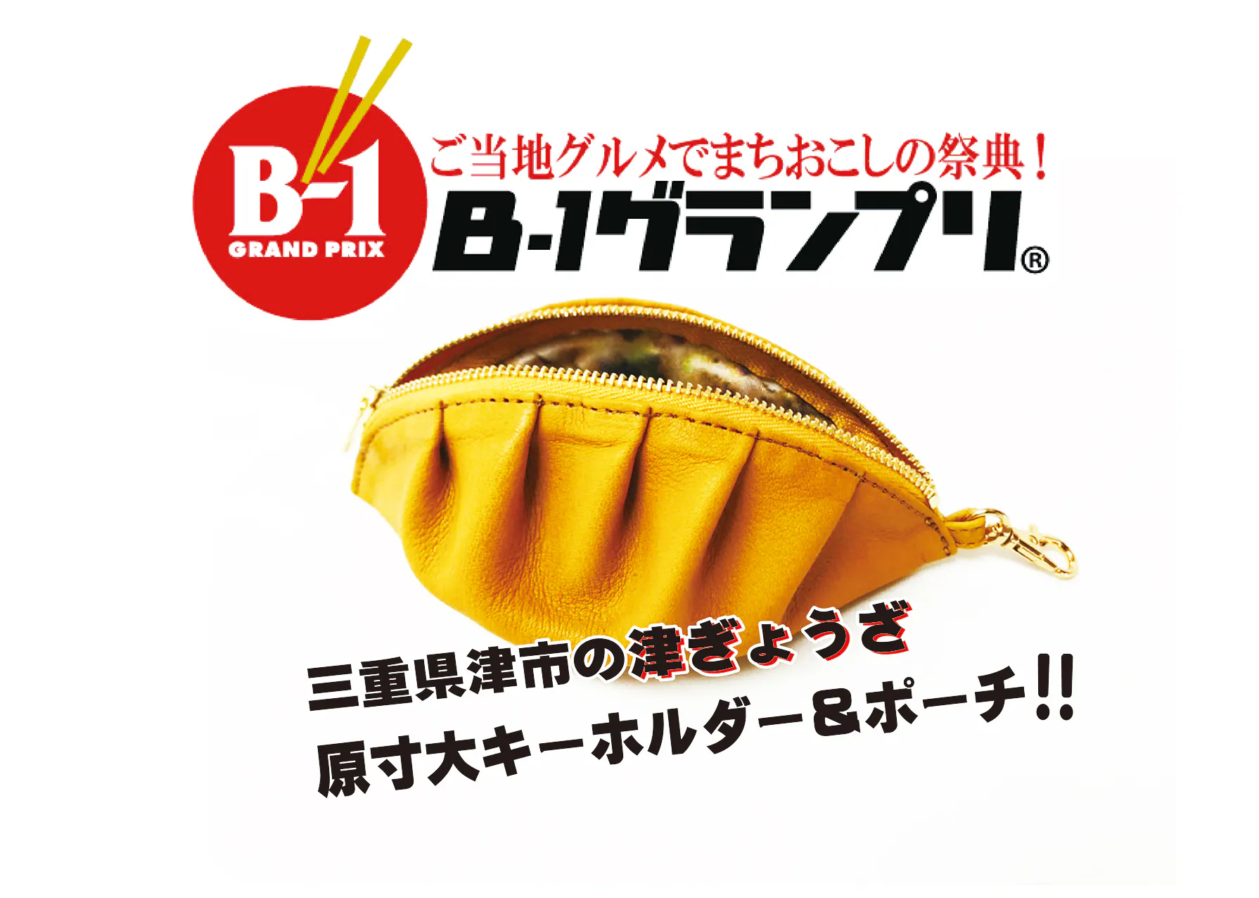 第一弾は三重県の新進気鋭のハンドメイド皮職人「ALPFA MADE(アルファメイド)」の結城春樹氏とのコラボ商品の三重県津市の名産品!「津ぎょうざ」を模した革製のキーホルダーとポーチになります!