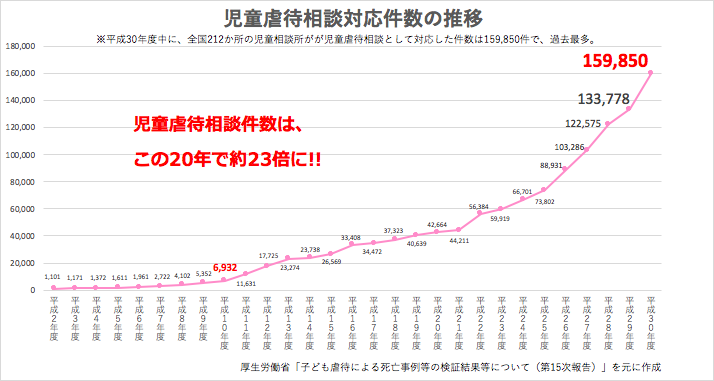 (児童相談所への虐待相談件数は年々増え続けています。)