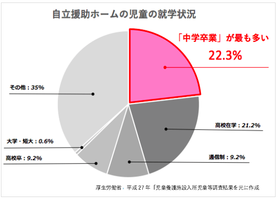 (自立援助ホームにくる子どもたちは、中卒が一番多いのです。)