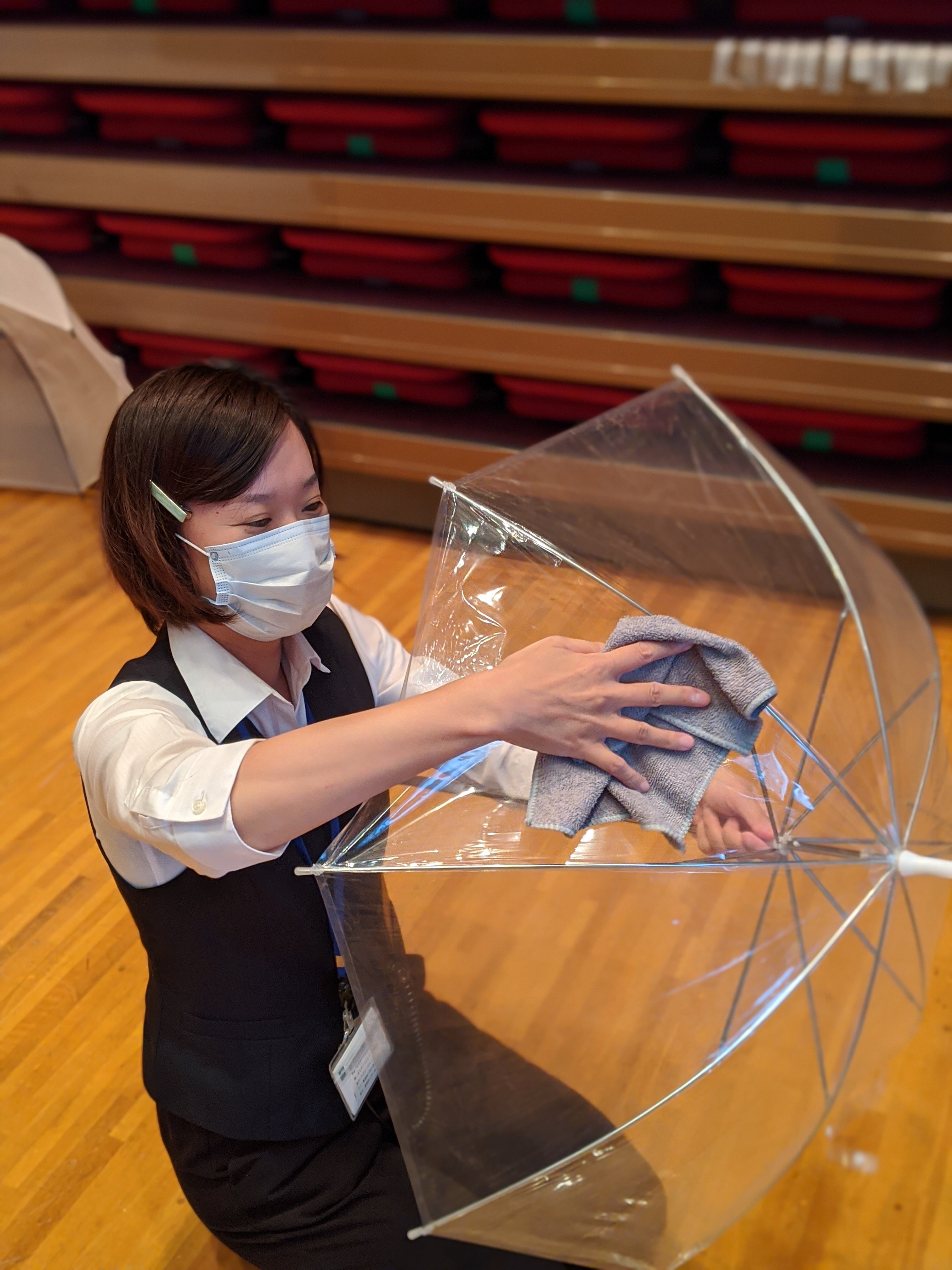 を中心に、子どもたちに使ってもらう傘を選別します。これだけで30分以上かかりました。