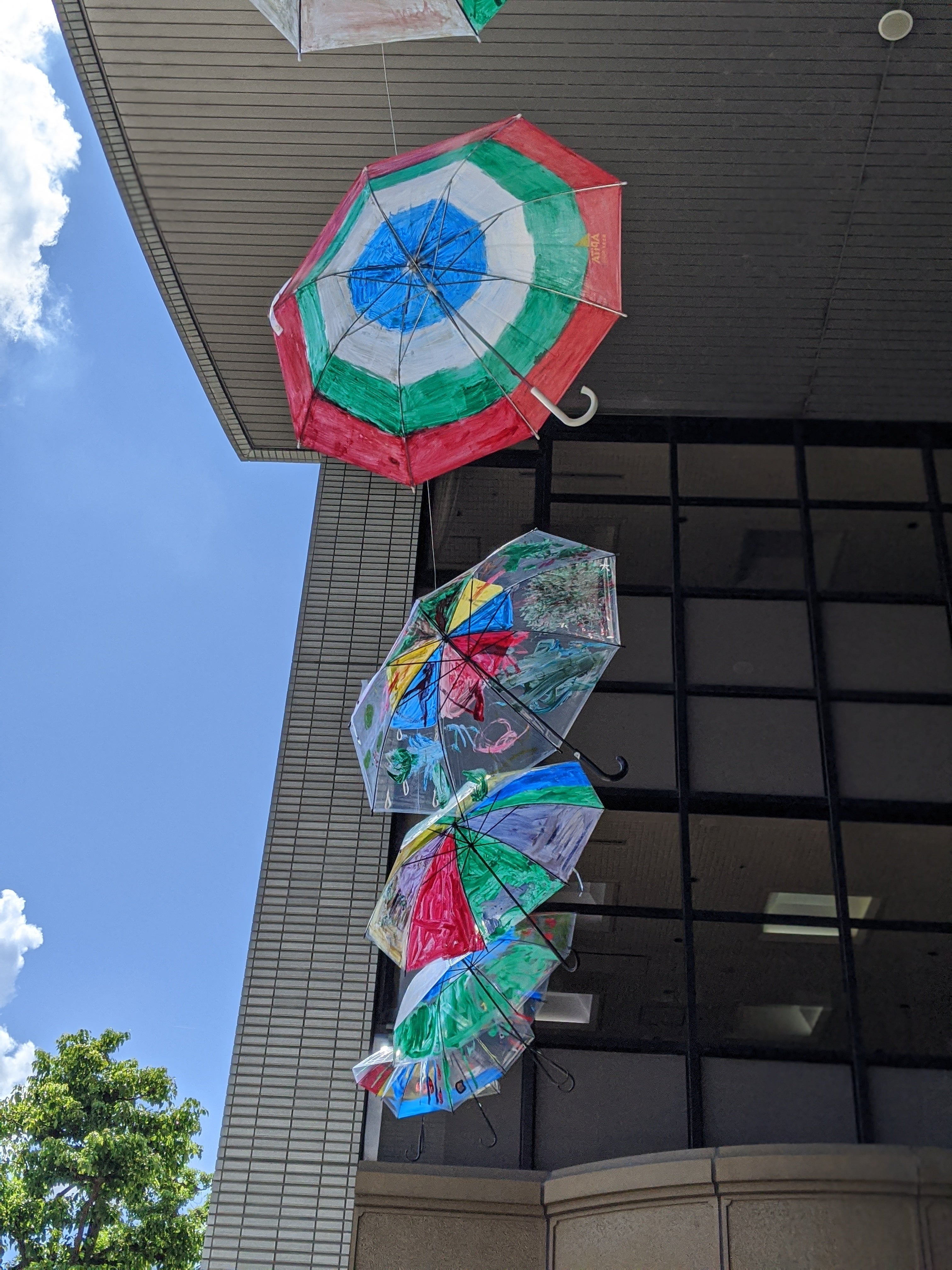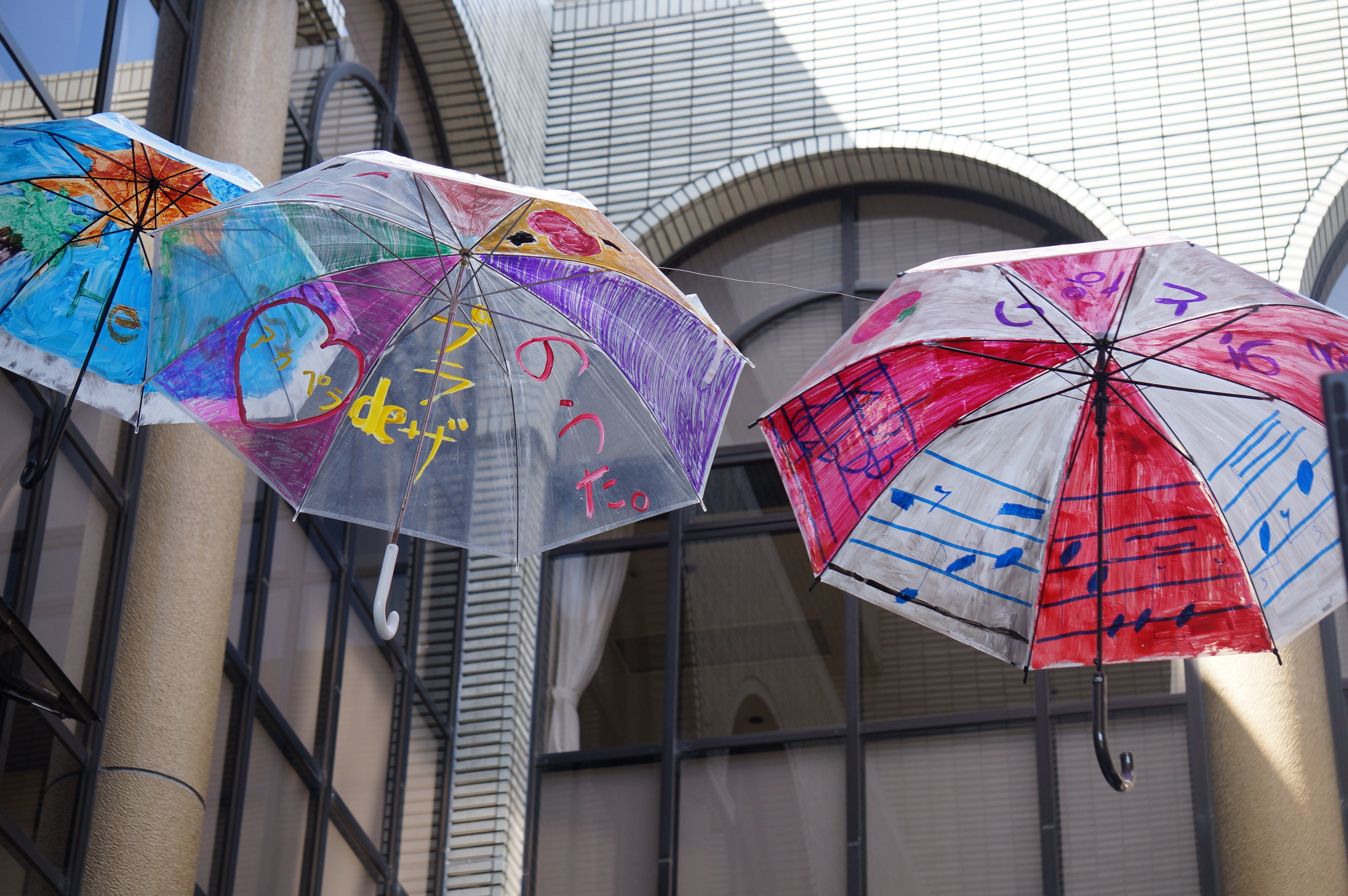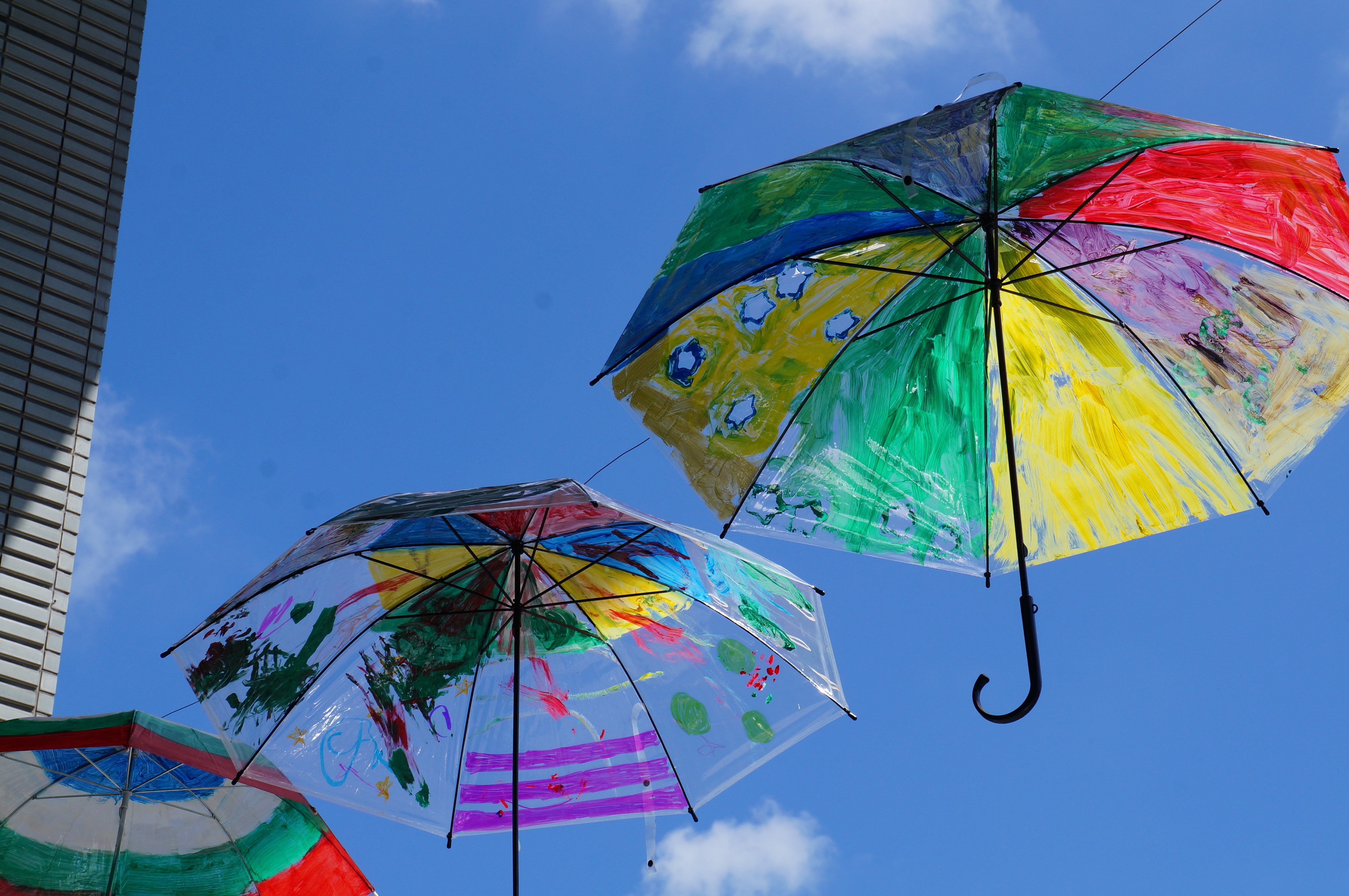 子どもたちが作った傘も、大人がイベント用に使った傘も、とても綺麗で、楽しそうに風に揺られていました♪