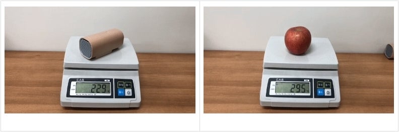 「CLOZER」の重さは約229g.リンゴの重さは295g.(自社測定)