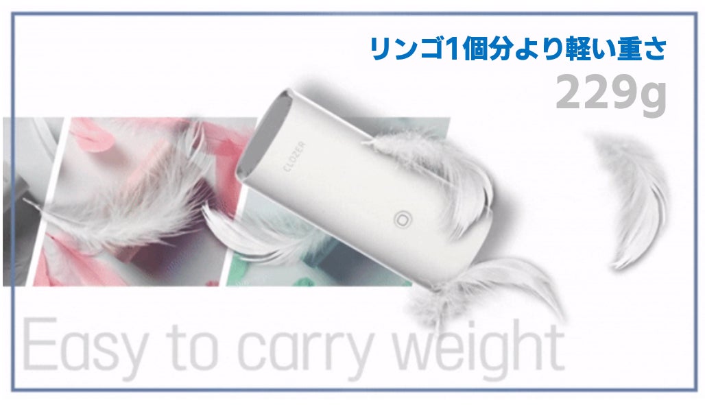 リンゴ1個分より軽いポータブルな重さで実現させたパーソナル家電「CLOZER」です。