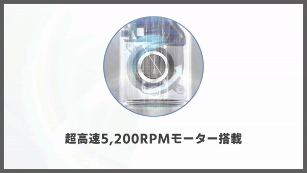 「マグネットの原理を利用した高効率&超高速5,200RPMモータ搭載」