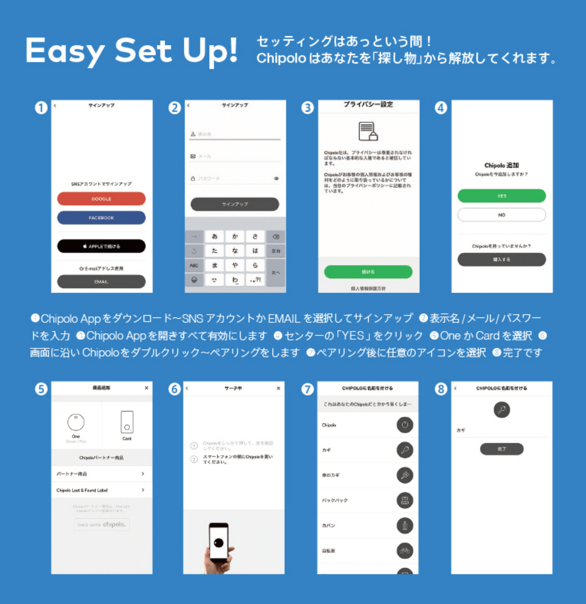1. Chipolo Appをダウンロード(SNSアカウントかEMAILを選択してサインアップ)