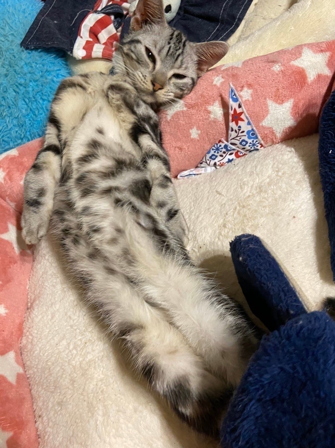 夜も布団に入ってきて一緒に寝たがります。他の同居猫達とも仲良くて、お利口さんです。