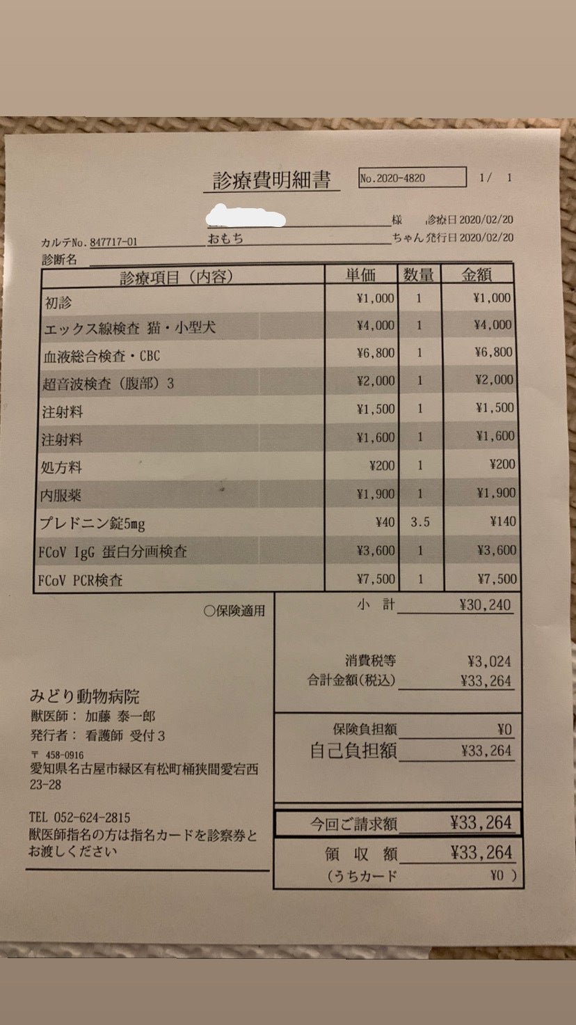 一昨日の診断書と、費用の明細になります。