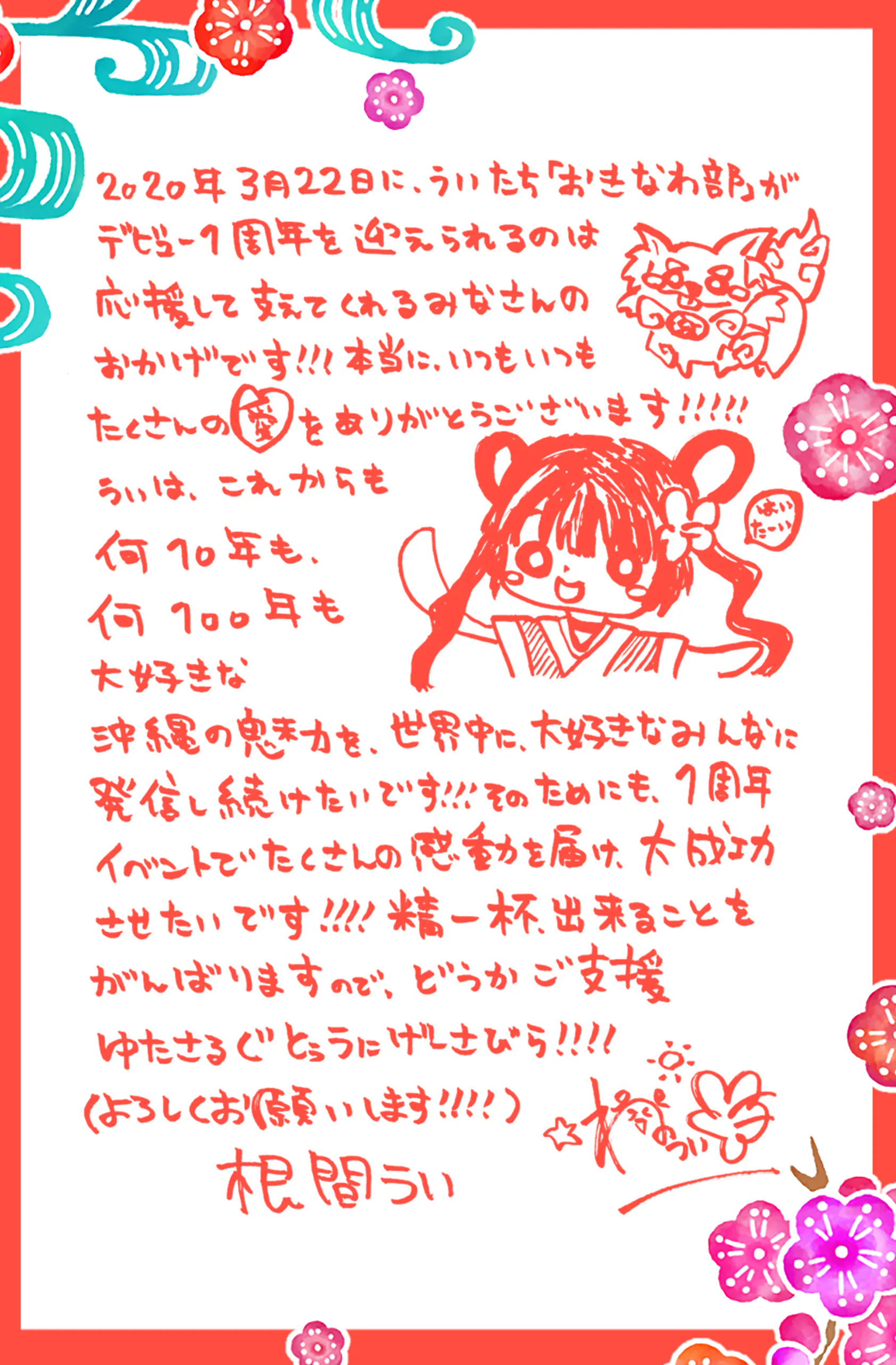 そして、このライブを成功させて、2周年では私たちの大好きな沖縄へみんなに来てもらって、一緒にみんなが楽しめる空間を作りたいと思っています。