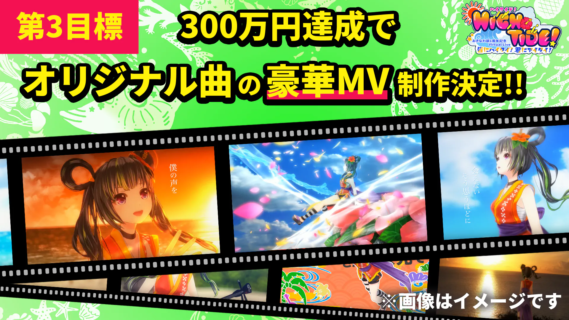 第3目標の300万円を達成しましたら、本イベントで初お披露目予定のオリジナル曲の豪華MVを制作いたします。おきなわ部の看板曲としてふさわしいMV を全力で制作いたします!!