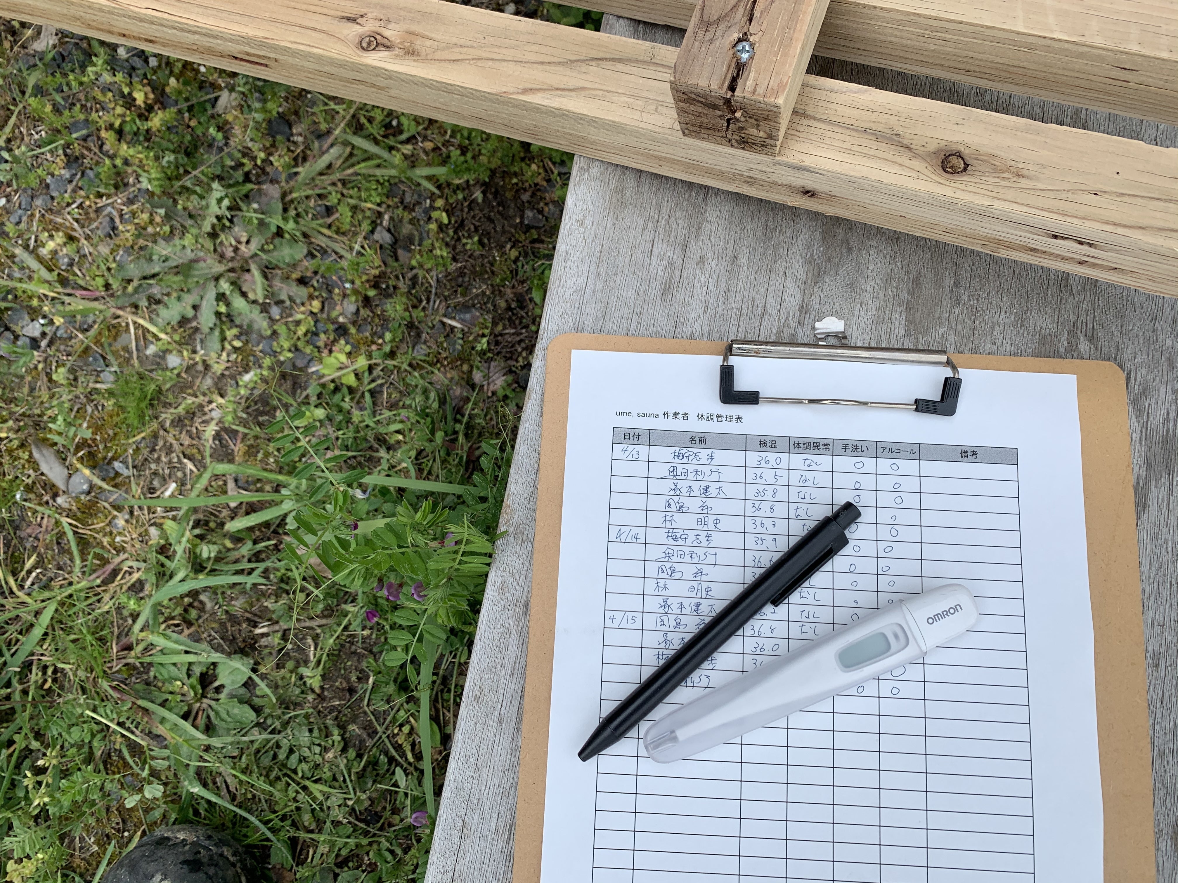 ※毎日、検温・手洗いアルコール・健康チェックとラジオ体操を行い、健康管理のもと工事を進めております。