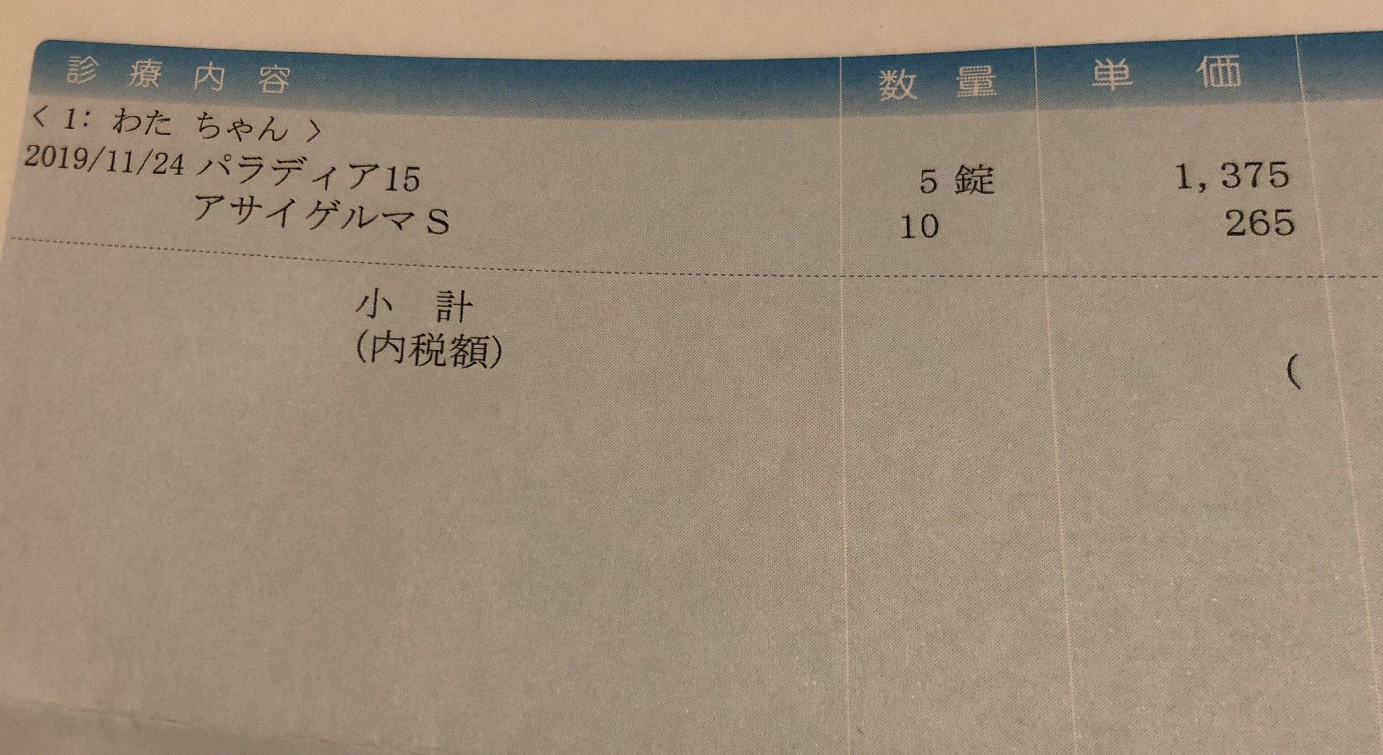・毎日の飲み薬 (10日分で約1万5千円)
