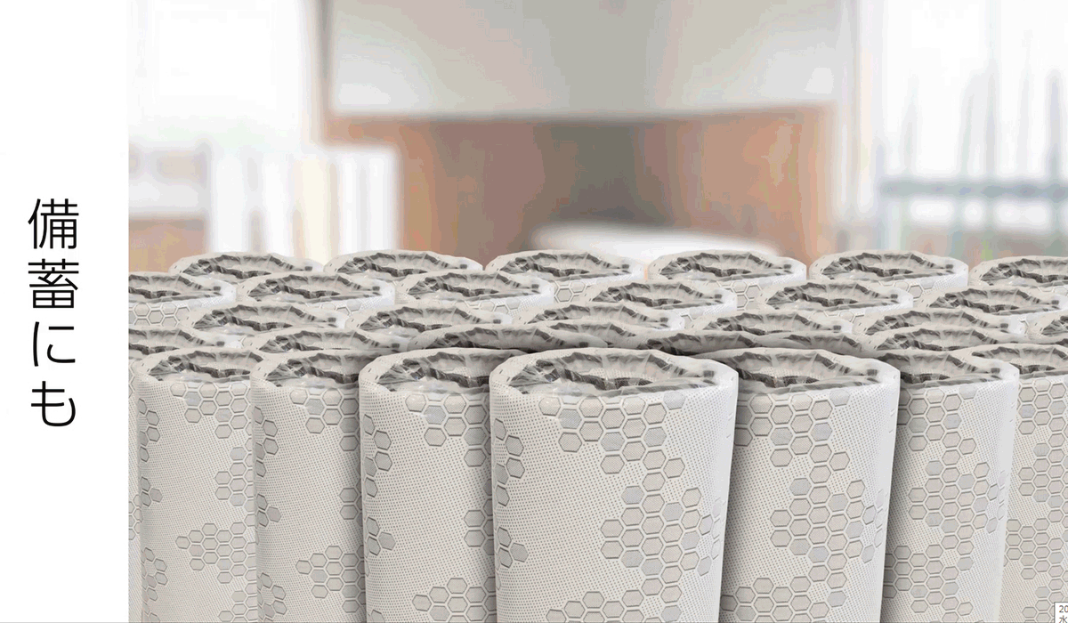 布用の除菌消臭スプレーなどをご利用いただき、直射日光を避け陰干しでのご活用をおすすめいたします。Q:備蓄の場合、ずっと丸めたままで保管すると思いますが形状は何年も持ちますか?