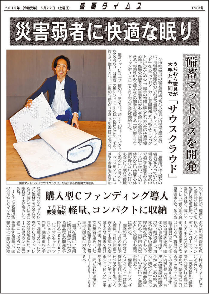 ★2019年6月22日付の盛岡タイムスに掲載されました!