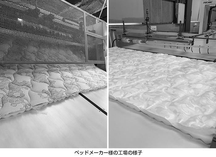⽣地は⼀流の製品に使う素材と同じ素材のマットレス⽣地とピロー⽣地ですが、⽣地の柄はメーカー様のロットの関係により固定しておりません。