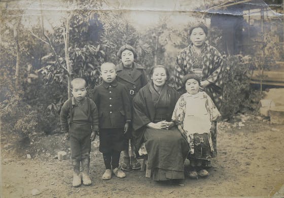 曽祖父の帰りを待つ家族達の写真です。真ん中の女性が高祖母おタネさん。弱音一つはかない大変気丈な女性であったそうですが、曽祖父が終戦後に帰って来た際はあまりに嬉しくてボロボロに泣き崩れたそうです。