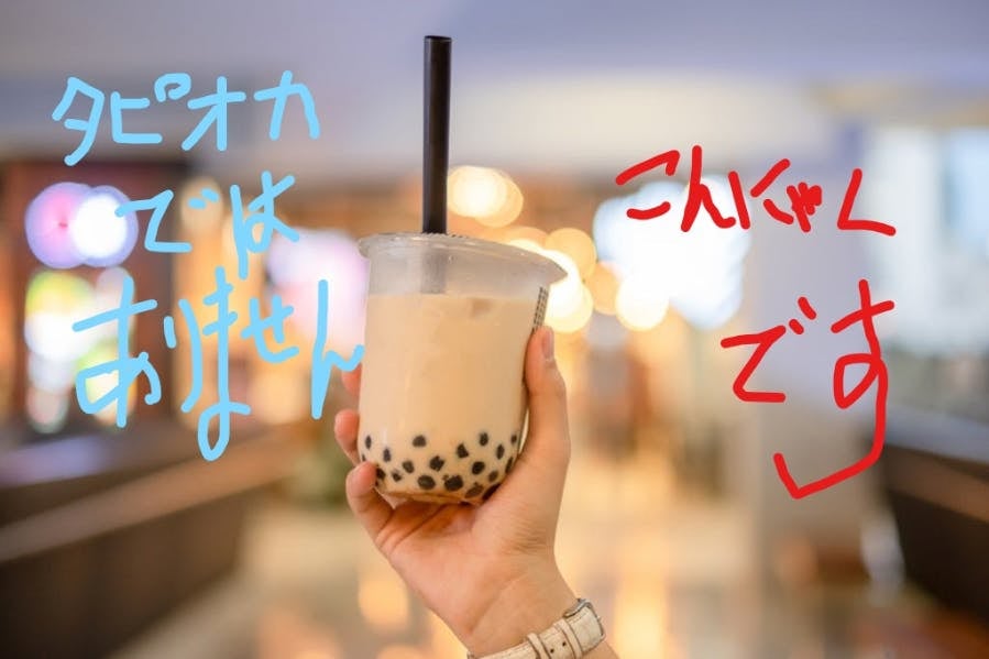 タピオカの代わりに粒状のこんにゃくを使った、ヘルシーなタピオカ風ドリンクを皆様にお届けします。