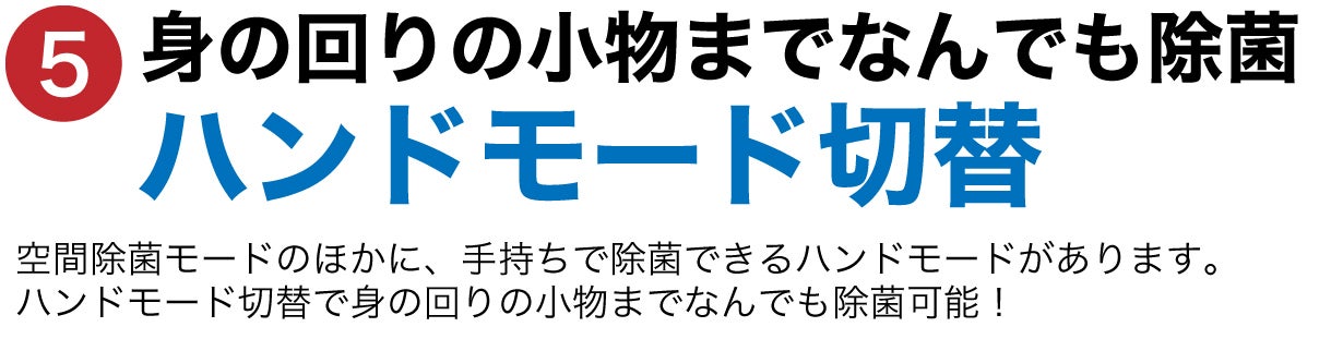 A,空間除菌モードと、ハンドモード(手動モード)の2種類のモードがございます。