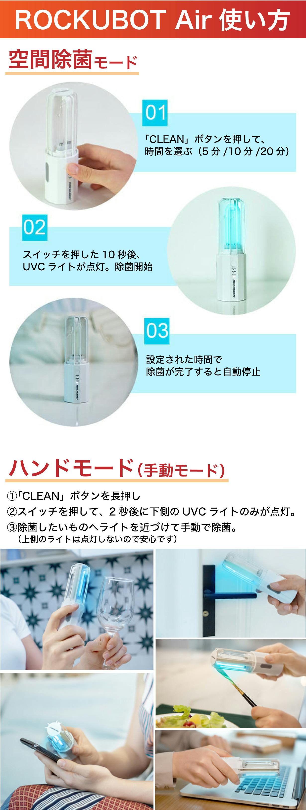 ROCKUBOTメーカーはそのUVC技術を応用し、持ち運びが便利で家庭でも簡単に使うことができる空間除菌製品を開発しました。