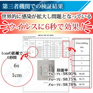 「早速1台を使用してみて、フックにぶら下げたり磁石で天井に貼り付けることができ、また気軽に除菌できてとても素晴らしい商品だなと感動しました。2台目も追加で購入させて頂きたいです」