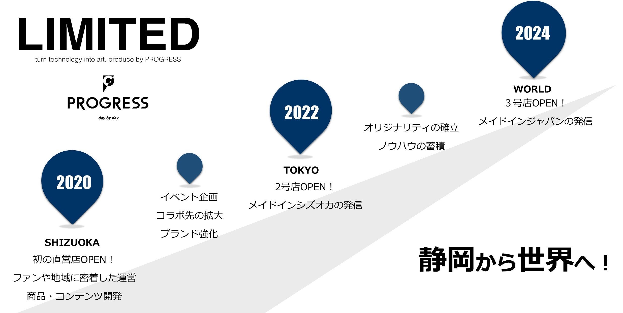 「静岡から世界へ」と向け、リブランディングを行い今のPROGRESSに。