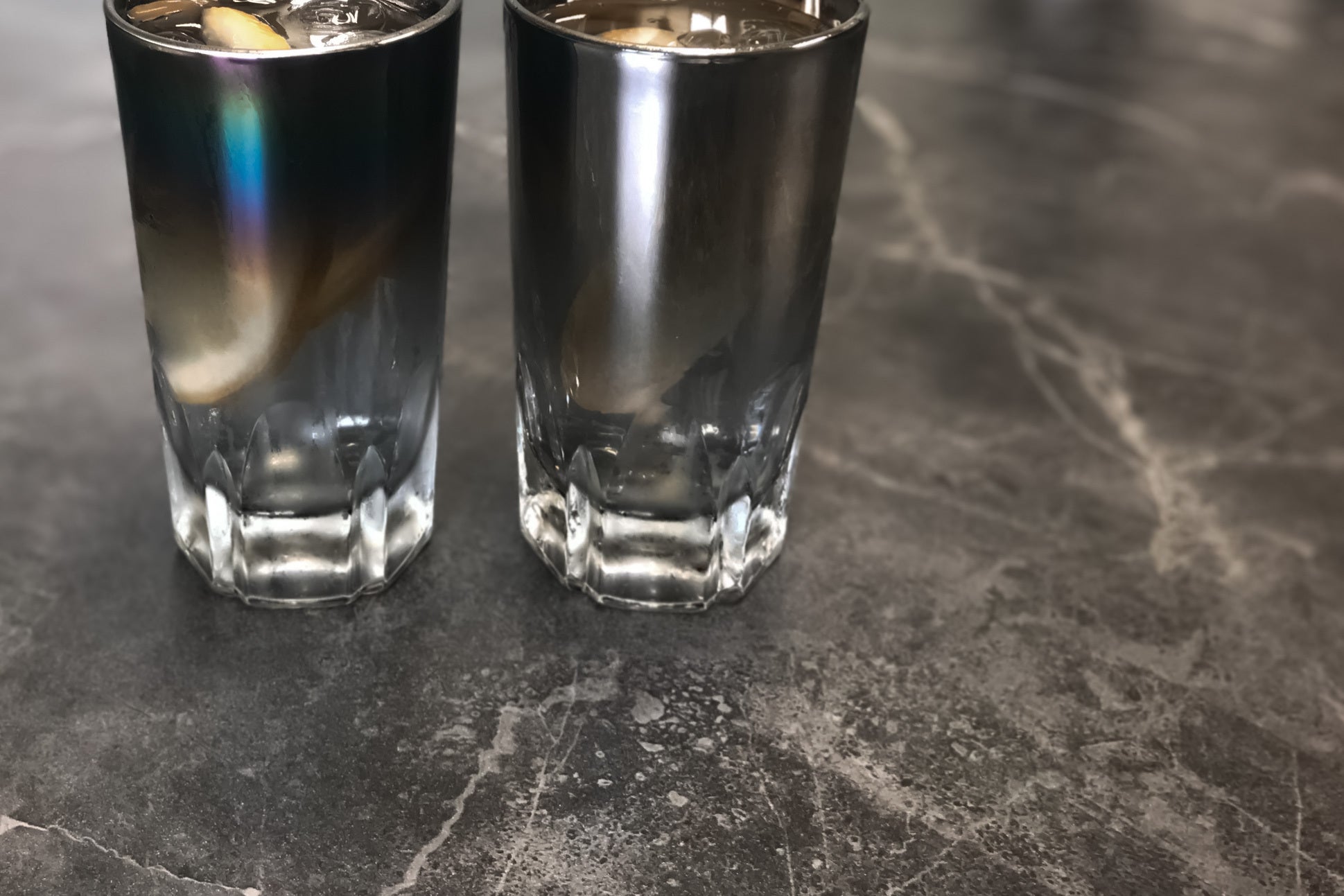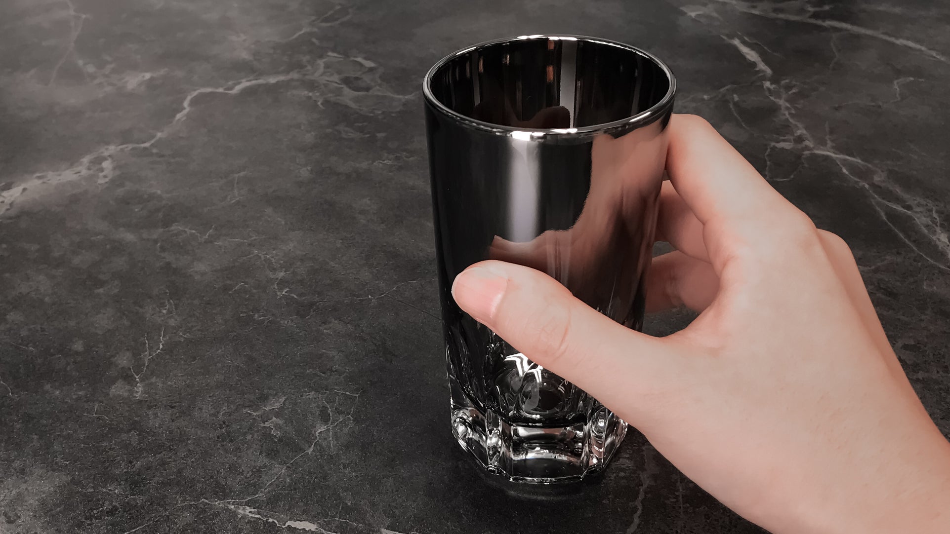 グラス下部のカット調のデザインがチタンコーティングのグラデーションをより上品に魅せてくれる、ちょっとした1杯におすすめのグラス。