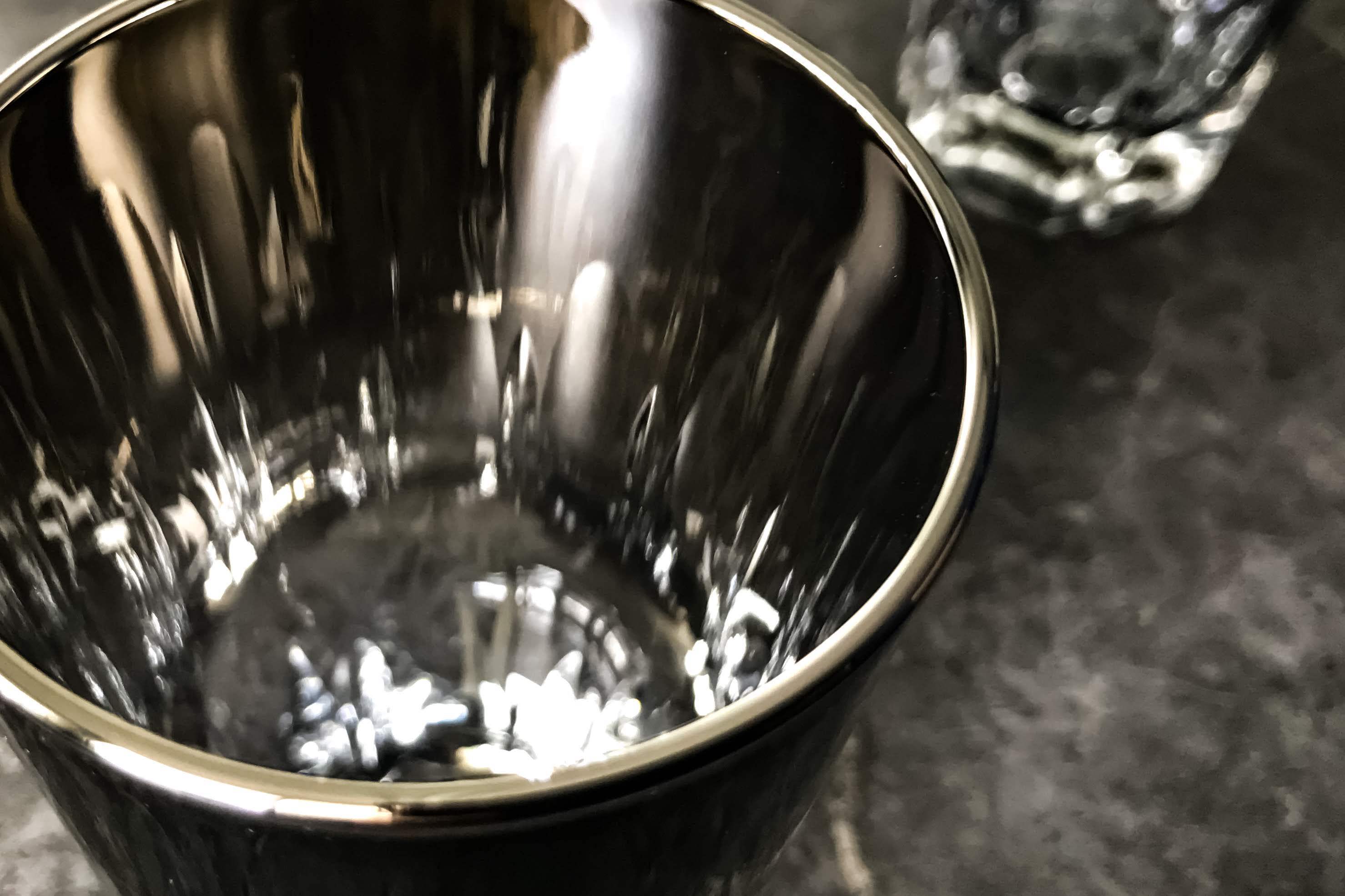 中を覗けば、カットとチタンミラーが生み出す輝きが美しいグラスです。