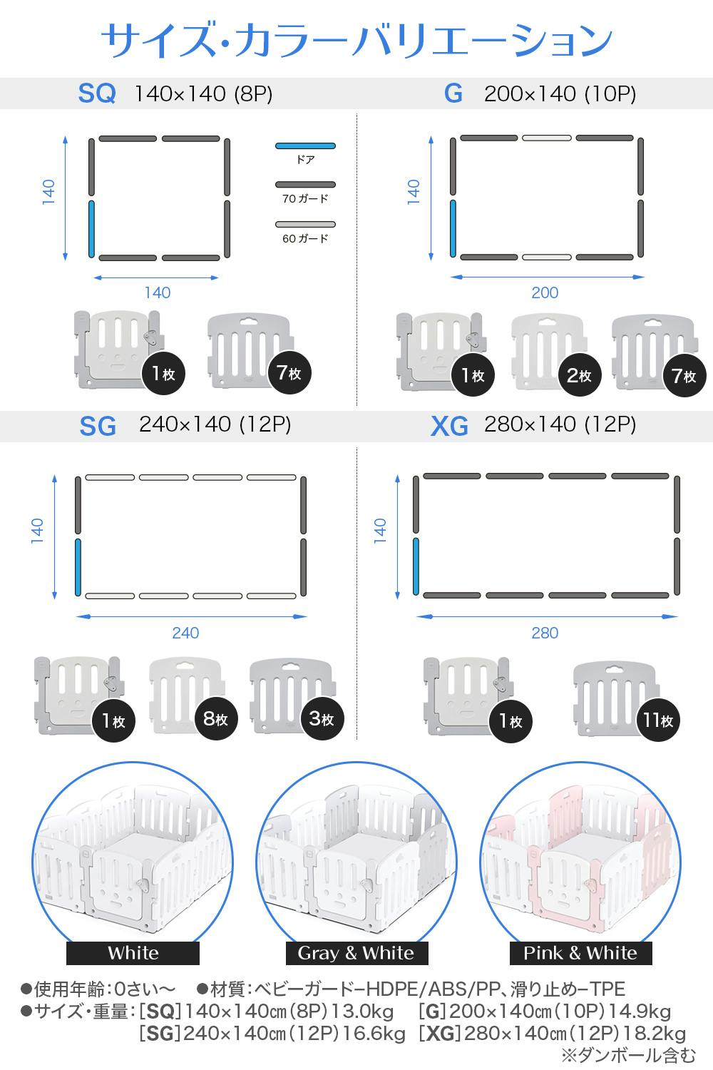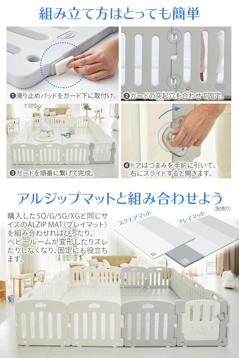 (例:ベビーサークルSQにはスクエアマット。ベビーサークルGにはGサイズのマット。)
