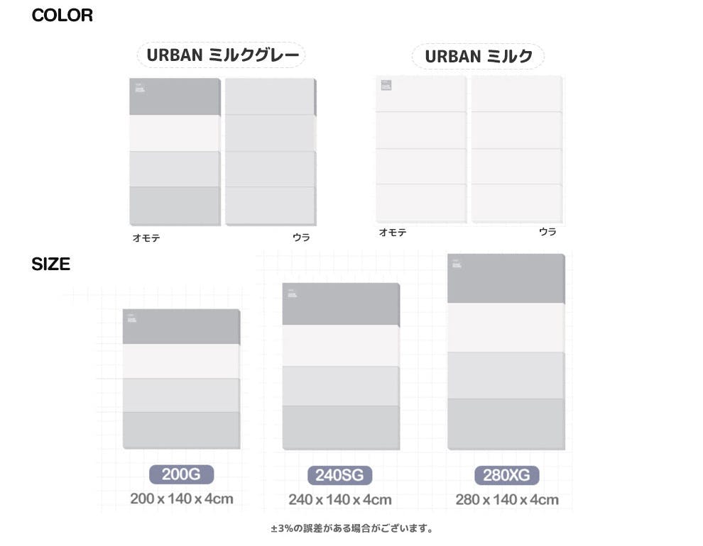 G/SG/XGサイズは、2種類(ミルクグレー / ミルク)からお選び頂けます。