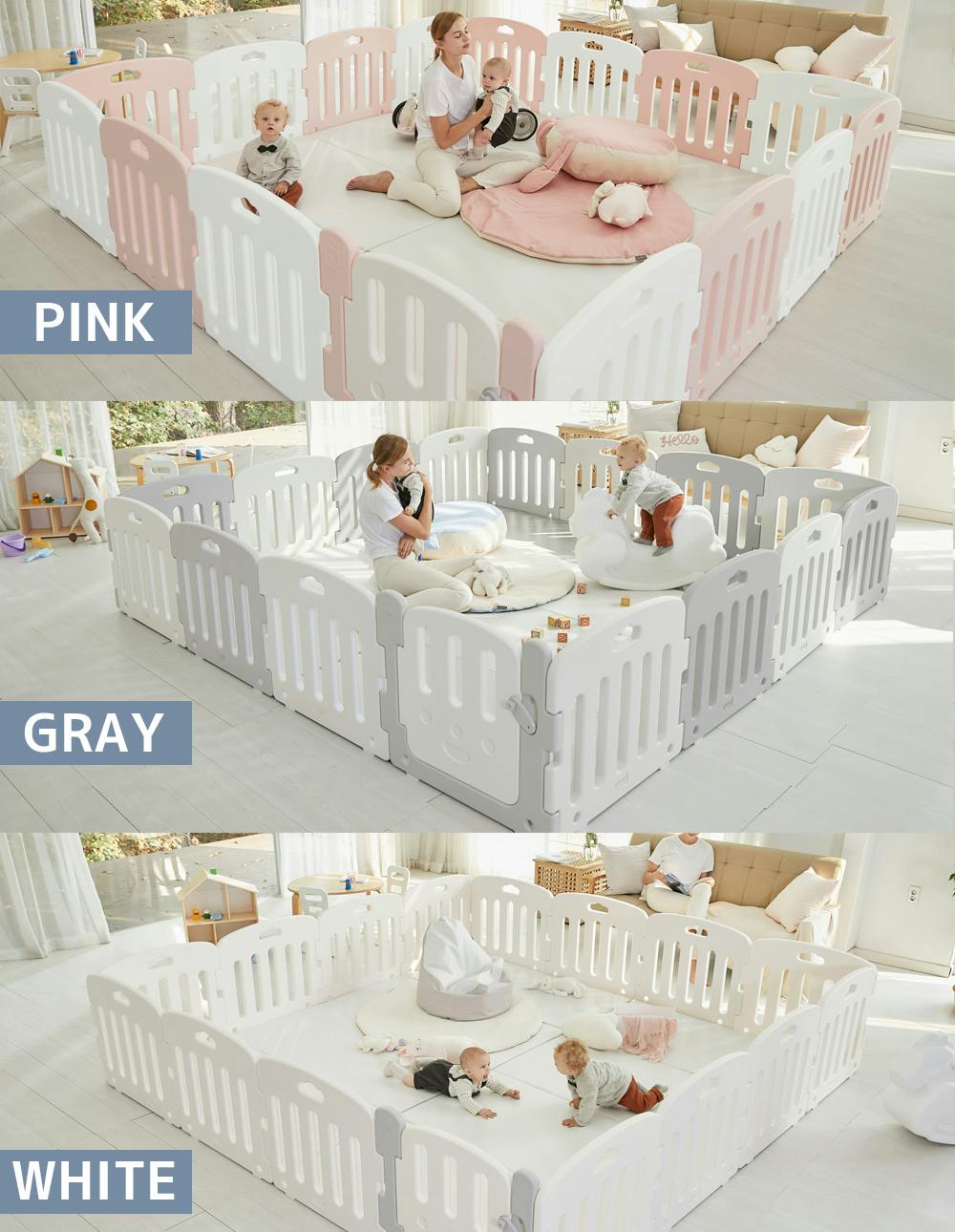 ベビーサークルは3色、プレイマットは2色からお選びいただけます。