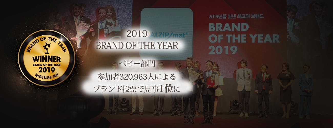 最近ですと、昨年韓国で行われた「BRAND OF THE YEAR 2019」では、320,963人の一般消費者の投票により、ベビー部門で1位に輝きました!単純にデザインだけでなく、品質や衛生管理にもこだわったALZIP MATだからこそ手に入れられた賞です。