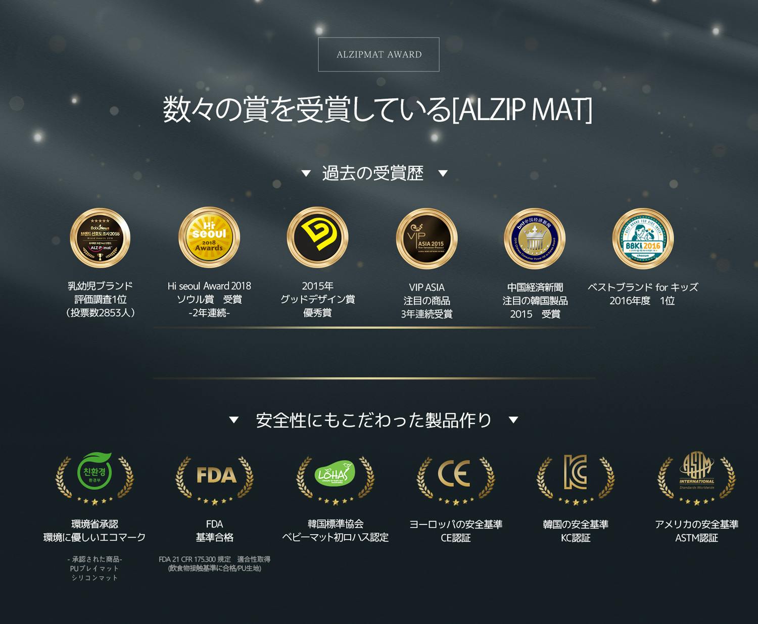 ALZIP MATは、毎年数々の賞を受賞している韓国ブランド。安全面でもこだわっています。