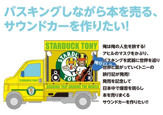 5月に自身の世界一周の旅とバスキングについて書いた書籍「トニーの俺行くし! 世界一周バスキング旅」を発売するスターダック・トニーです。