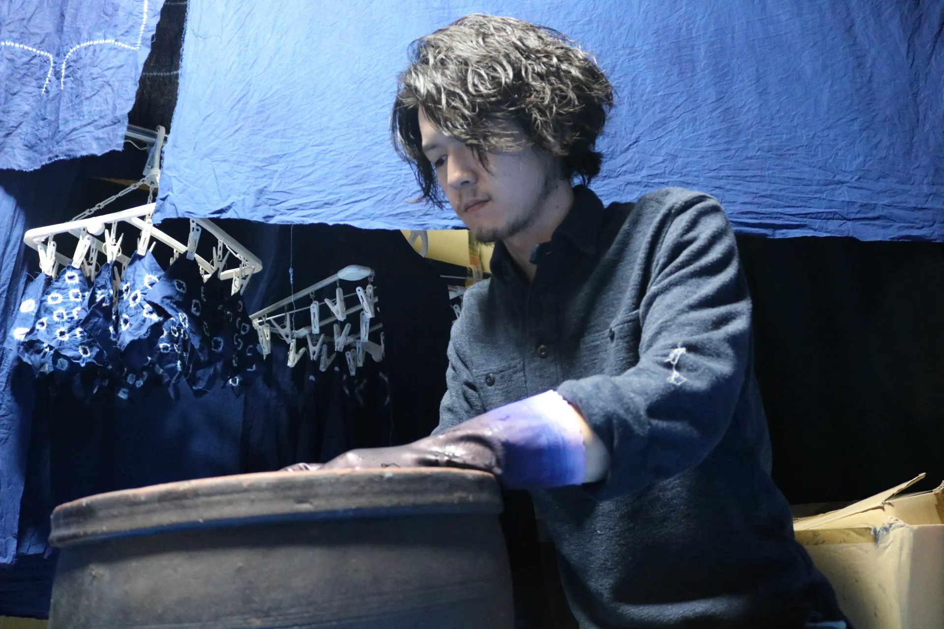 僕は福岡県朝倉市で「甘木絞り」と言う伝統工芸の絞り染めをやっております。