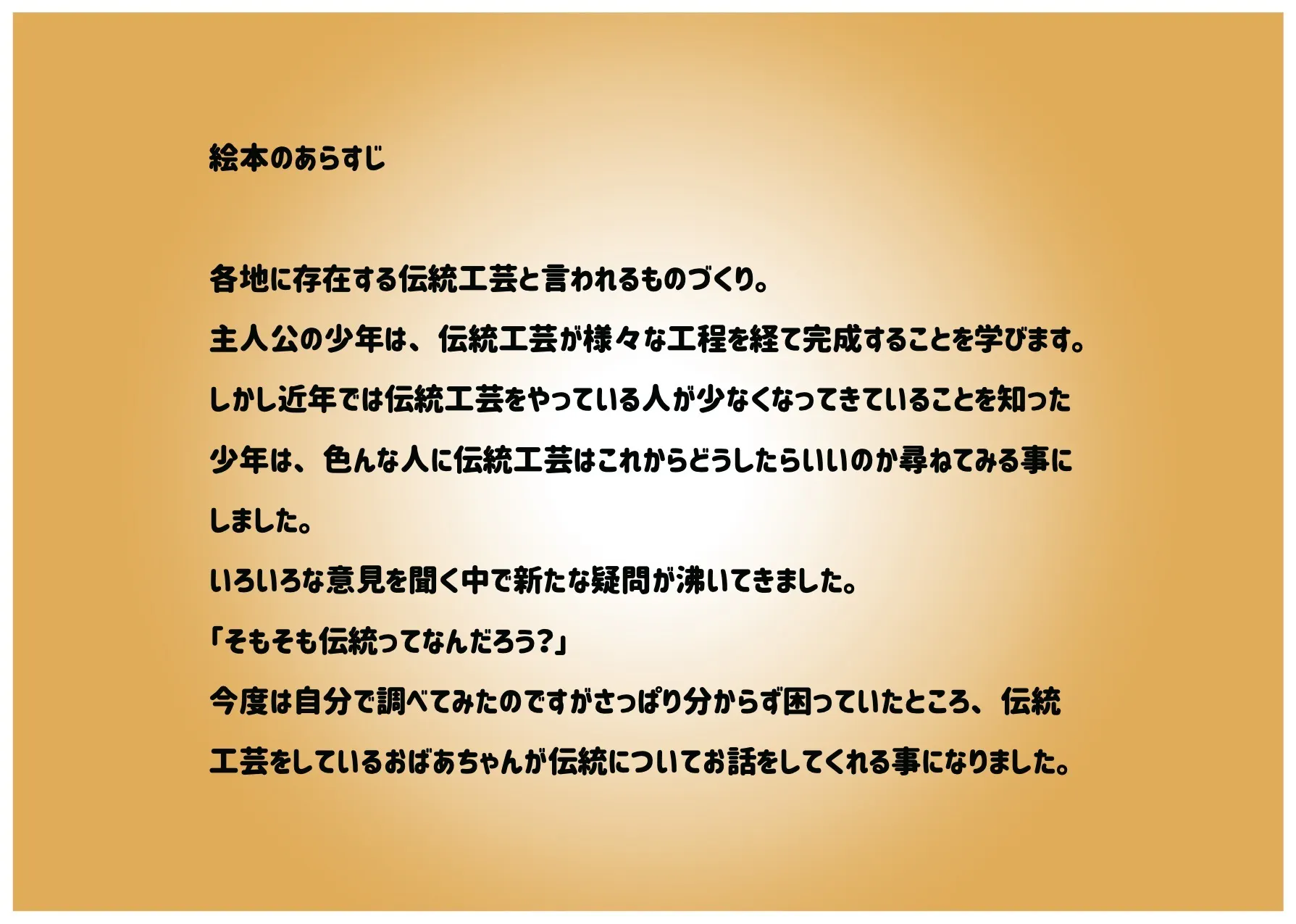 今回「伝統工芸はなぜ大切なのか?そもそも伝統とは何なのか?」をテーマにした絵本を制作します。