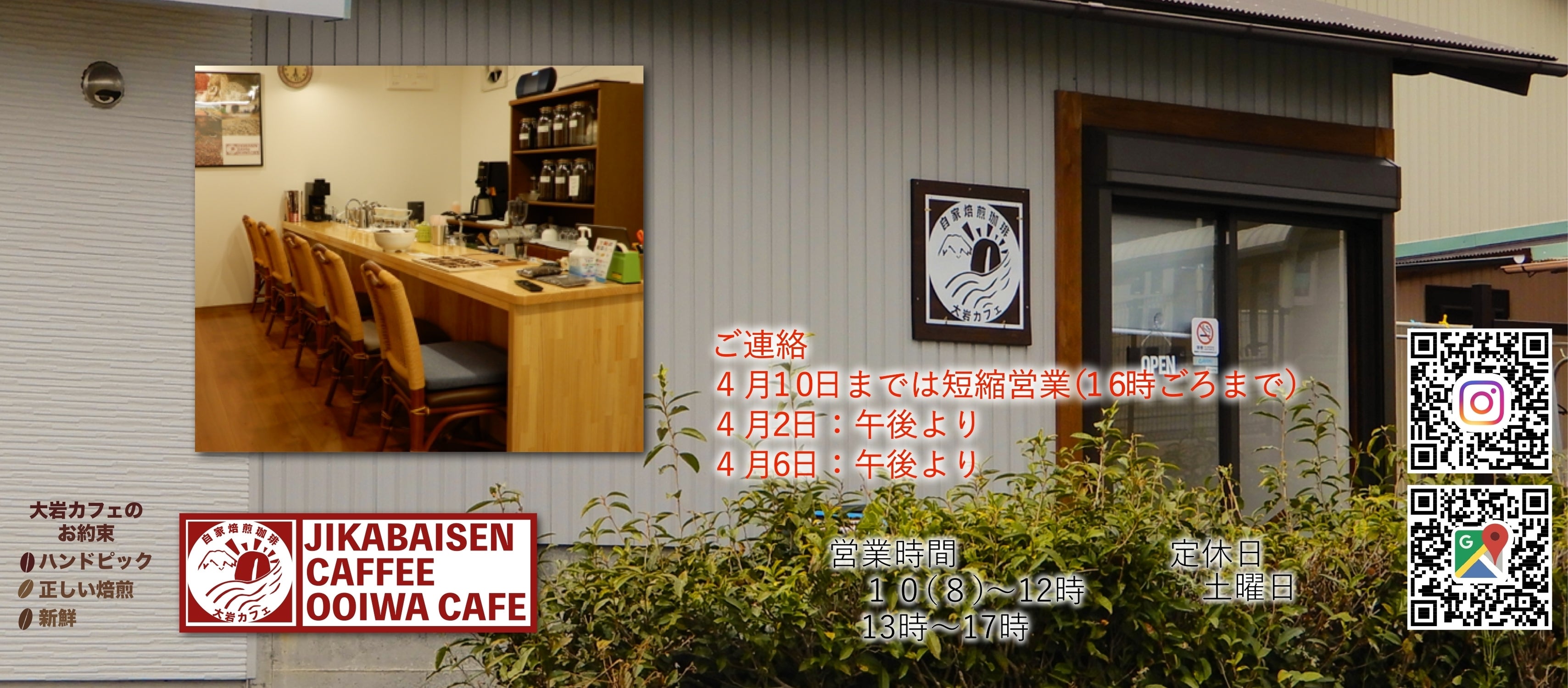 3月30日(月) 自家焙煎珈琲 大岩カフェの開業・営業開始