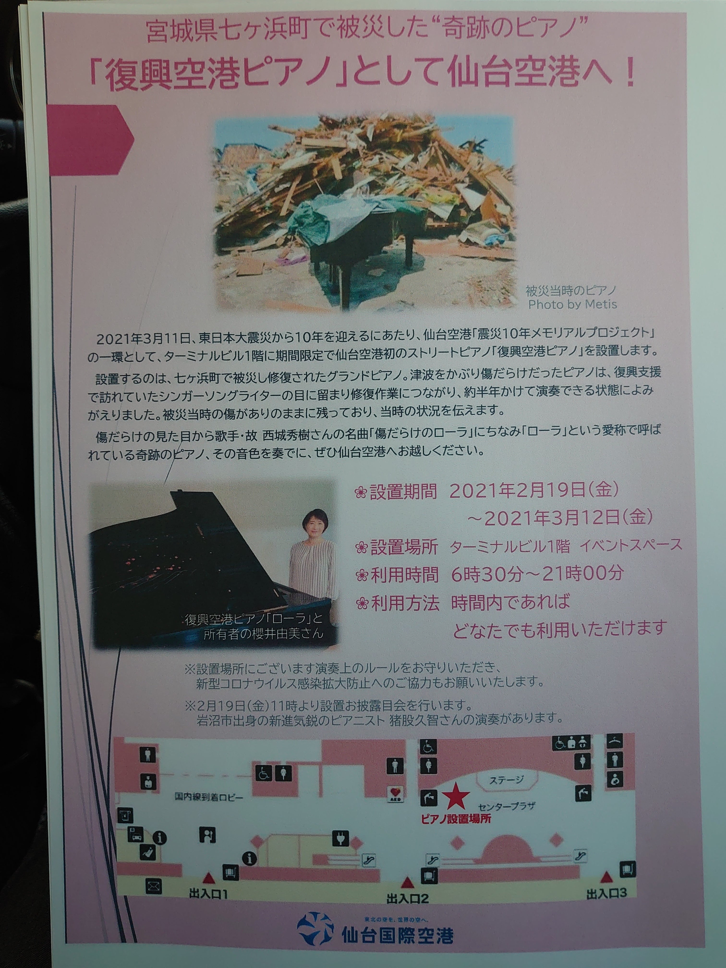 先週、仙台国際空港広報さんのメディアリリースを受け、こちらでも『空港ピアノ』の詳細を発表させて頂きます。