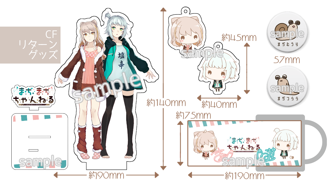 活動報告にもありますが75000円支援にリターンがございます。 【誤】 一言お礼メッセージサイン付き(直筆) ファンクラブカード お名前入りお礼ボイスメッセージ 限定缶バッチ2種類(かたつむり&なめくじ) 限定デフォルメアクリルキーホルダー2種類(むうり&つらら) 限定等身アクリルスタンド1種類(むうり&つらら) 限定マグカップ むうりとつららと通話20分券(Discord or Skype)/個別対応可 ※個別の場合それぞれ10分ずつ 【正】 一言お礼メッセージサイン付き(直筆) ファンクラブカード お名前入りお礼ボイスメッセージ 限定缶バッチ2種類(かたつむり&なめくじ) 限定デフォルメアクリルキーホルダー2種類(むうり&つらら) 限定等身アクリルスタンド1種類(むうり&つらら) 限定マグカップ むうりとつららと通話20分券(Discord or Skype)/個別対応可 ※個別の場合それぞれ10分ずつ 限定抱き枕カバー(表むぅり 裏つらら) 限定抱き枕カバー(表むぅり 裏つらら)が表記されていませんでした。大変申し訳ございません。 すでに支援済みで75,000円コースに変更したい場合はDMください。
